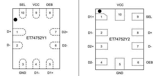 芯片工作電壓范圍寬(2.3V~5.5V),功耗極低(工作電流32μA,待機(jī)0.1μA),支持雙1:2或2:1靈活切換,通過SEL和OEB引腳實(shí)現(xiàn)通道獨(dú)立控制。提供兩種微型QFN10L封裝(1.8mm×1.4mm/2.0mm×1.5mm),適用于智能手機(jī)、USB Type-C接口、PC擴(kuò)展塢等場景。其快速切換(3μs)、高隔離度(-90dB@100kHz,實(shí)測值)和寬溫工作(-40°C~+85°C)特性,滿足嚴(yán)苛環(huán)境下的高可靠性需求,是緊湊型設(shè)備接口保護(hù)的理想解決方案。