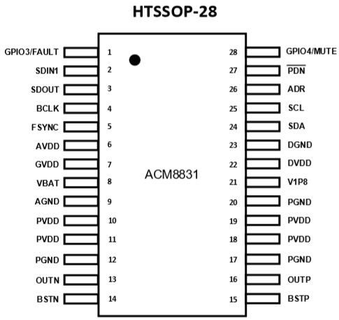 ACM8831 一款高度集成、高效率、低EMI的單通道數(shù)字輸入D類音頻功放。