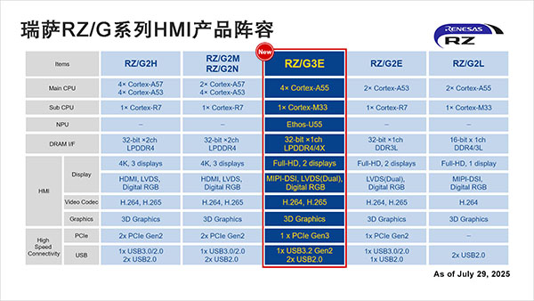 Daryl Khoo, Vice President of Embedded Processing at Renesas表示:“RZ/G3E在RZ/G系列成熟性能的基礎(chǔ)上,增加了NPU以支持AI處理。通過(guò)使用與我們最近發(fā)布的RA8P1微控制器相同的Ethos™-U55 NPU,我們?yōu)锳I開(kāi)發(fā)提供了可擴(kuò)展的路徑。這些增強(qiáng)功能憑借強(qiáng)大的AI能力,滿(mǎn)足下一代HMI應(yīng)用在視覺(jué)、語(yǔ)音和實(shí)時(shí)分析方面的需求!