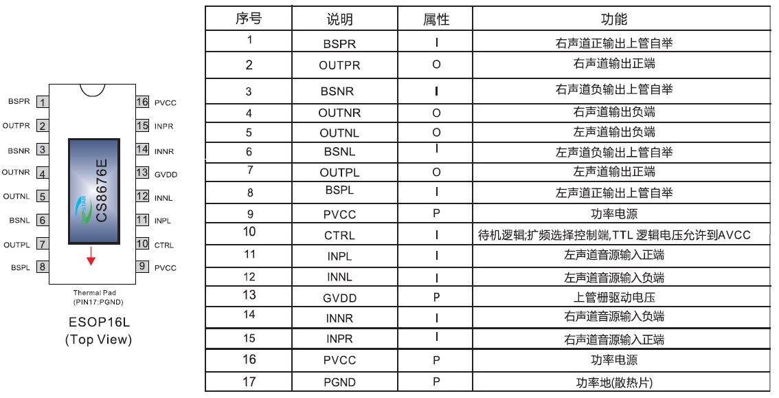 CS8676E提供纖小的ESOP16封裝形式供客戶選擇,可以為客戶節(jié)省可觀的PCB面積,其額定的工作溫度范圍為-40℃至85℃。