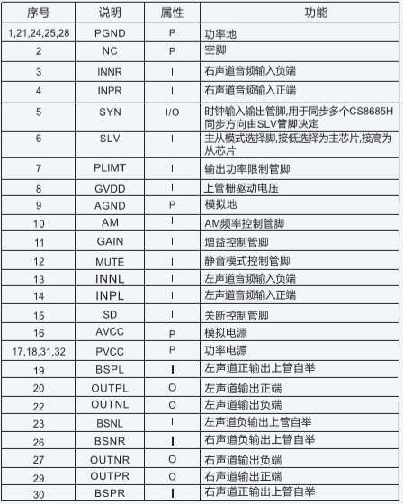 當(dāng)前位置:首頁->產(chǎn)品展示->功放IC->CS8685(2x80W雙聲道大功率D類音頻功放IC) |