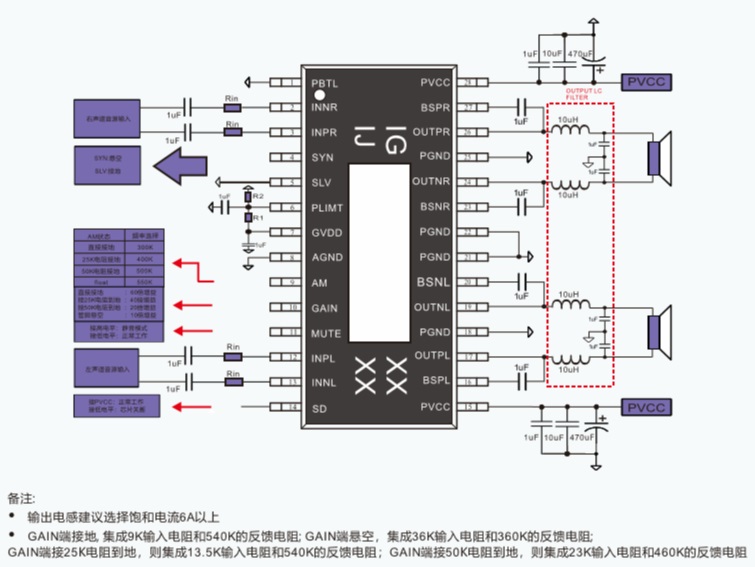 低空載電流,AM抑制功能,帶主從模式,145W單聲道、2X75W立體聲D類音頻功放 |